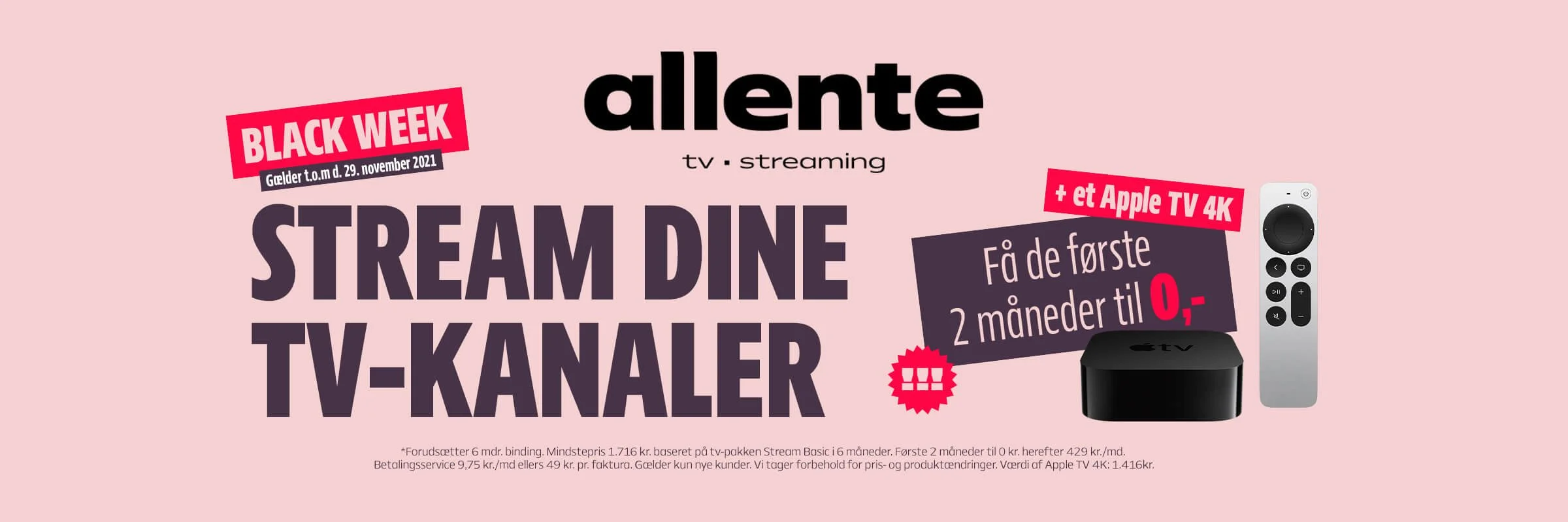 Allente is a Nordic TV provider across Denmark, Sweden, Norway, and Finland. Formed in 2020 through a merger of Canal Digital and Viasat Consumer, it is jointly owned by Telenor Group and Viaplay Group.