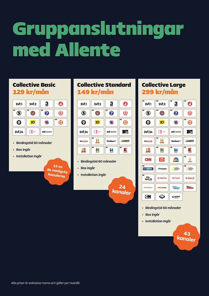 Allente is a Nordic TV provider across Denmark, Sweden, Norway, and Finland. Formed in 2020 through a merger of Canal Digital and Viasat Consumer, it is jointly owned by Telenor Group and Viaplay Group.